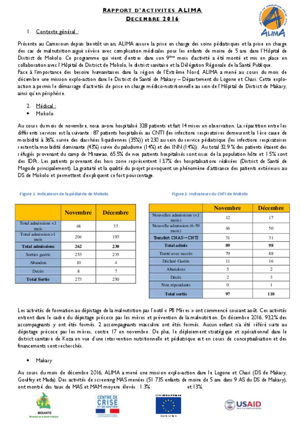 Cameroun : Rapport d'activités ALIMA, décembre 2016