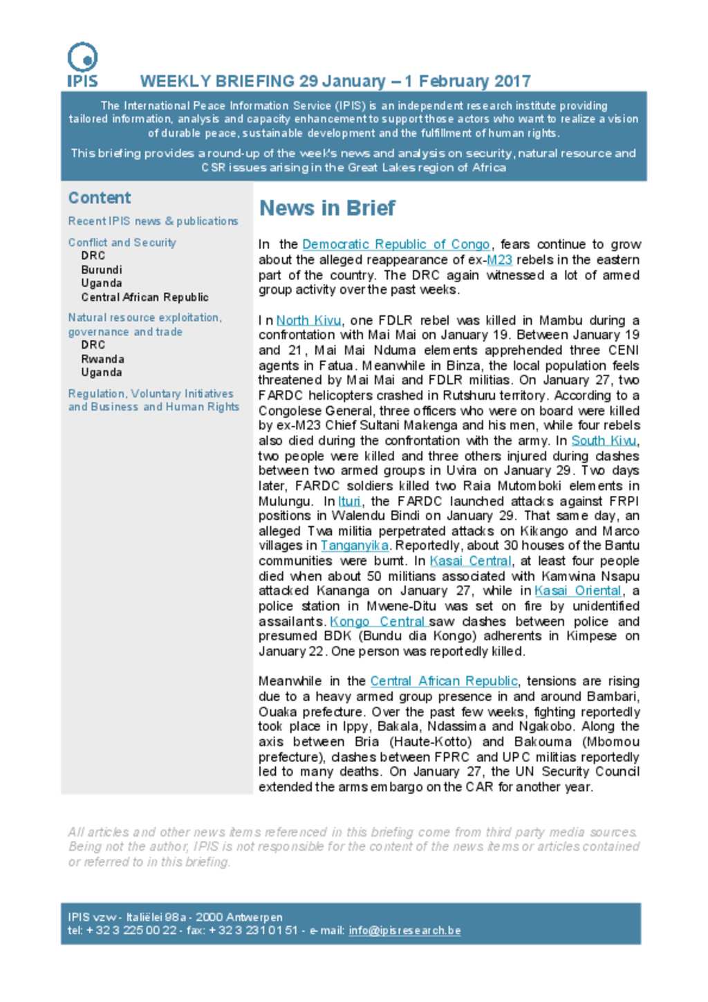 IPIS Weekly Briefing, January – 1 February 2017 [EN/FR]