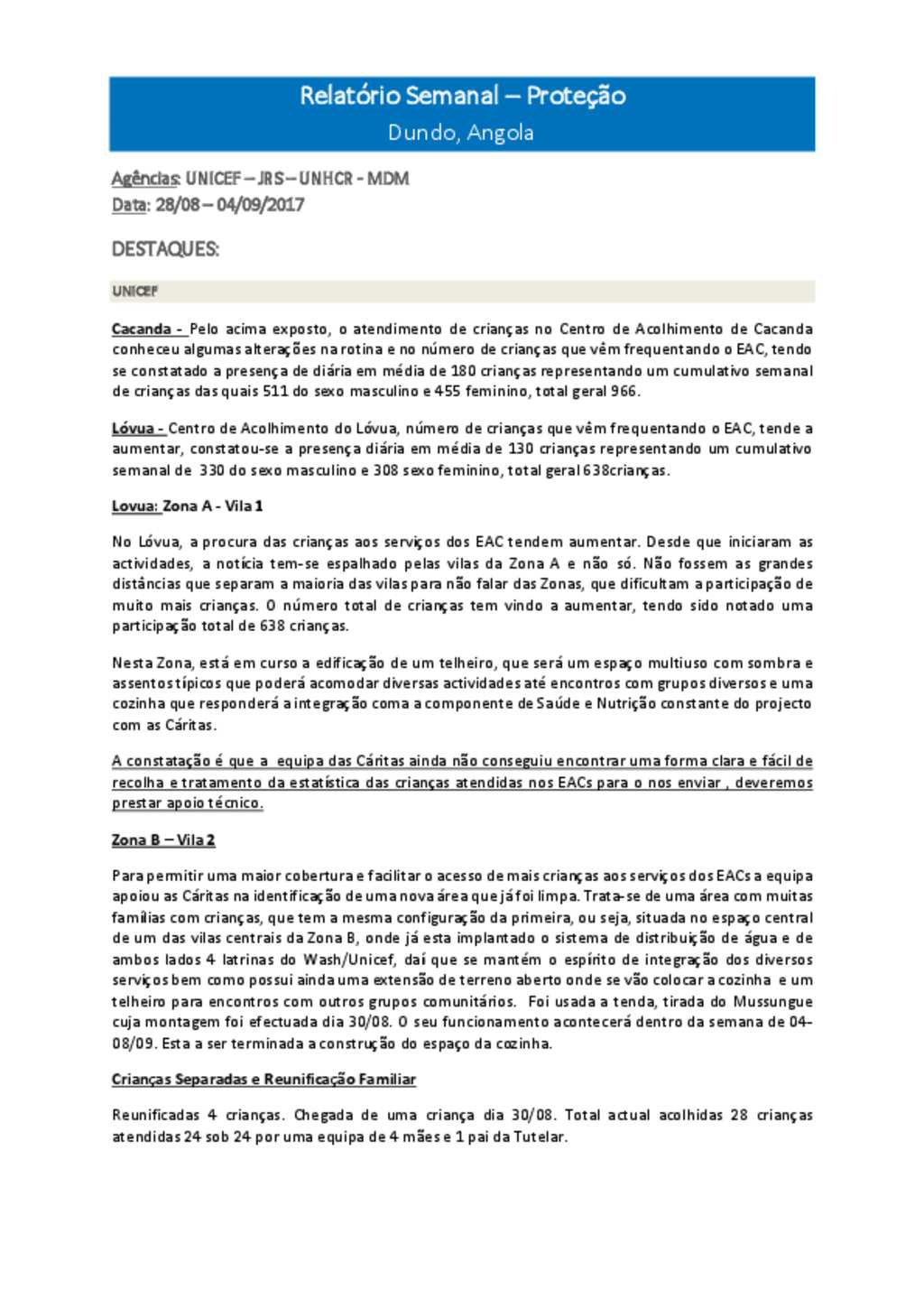 Protection weekly report 28 August - 4 September / Protecção relatório semanal 28 Agosto - 4 Setembro