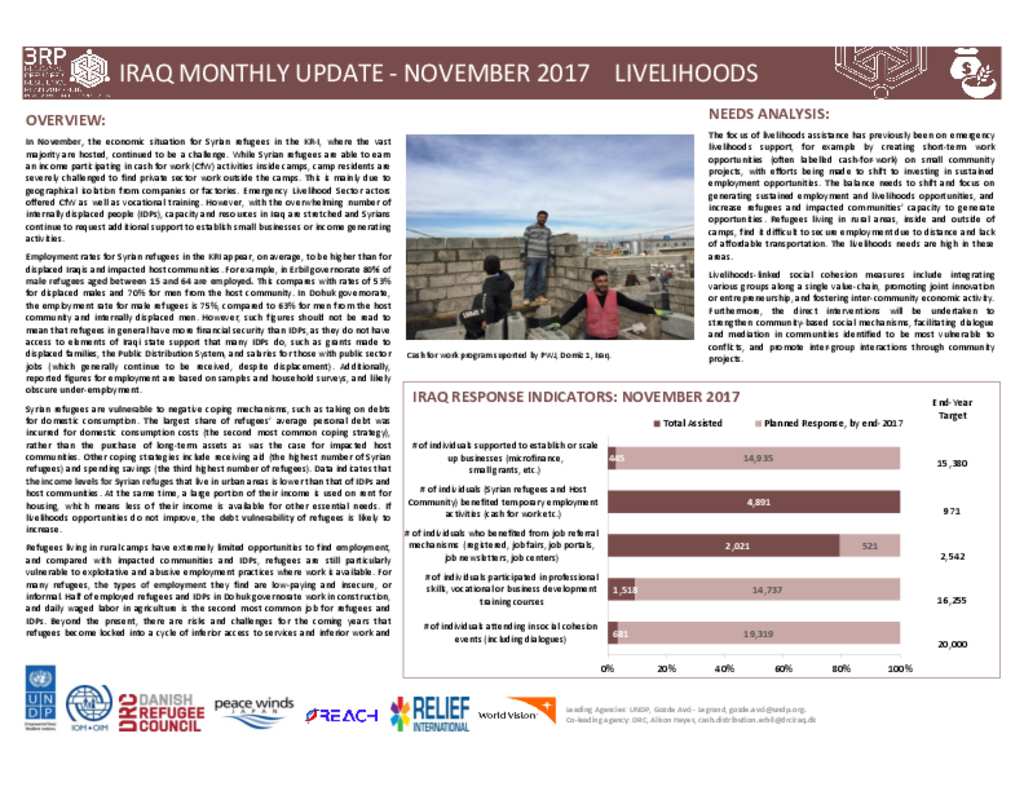 8. Iraq 3RP NOVEMBER 2017 Livelihoods Sector Dashboard Syrian Refugees
