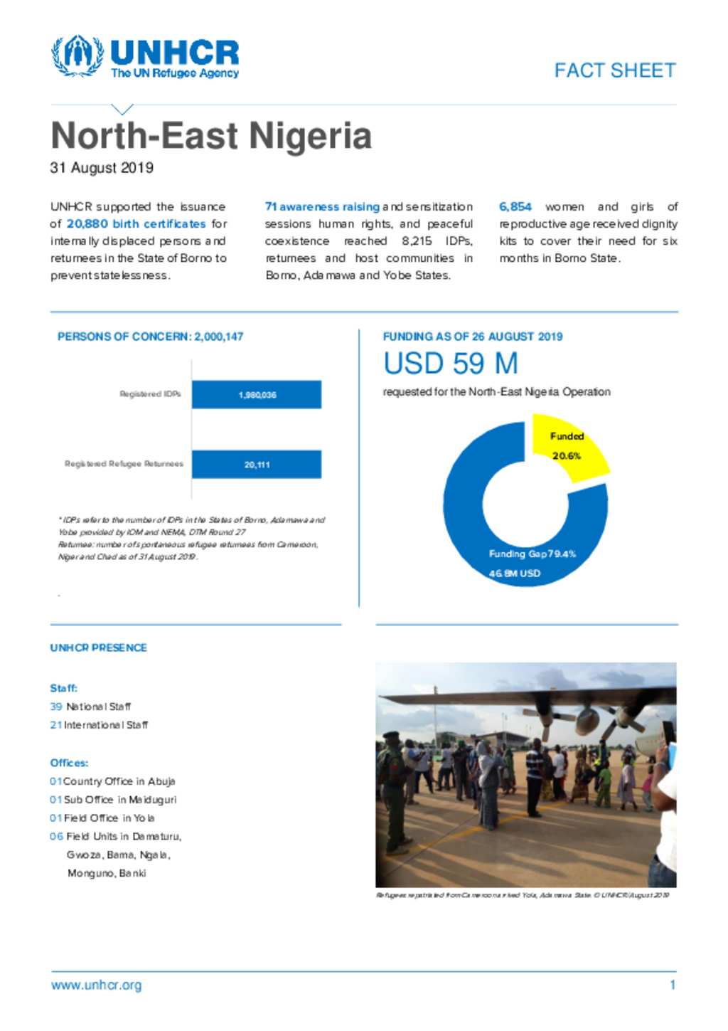 UNHCR Nigeria: North-East Nigeria Fact Sheet for August 2019