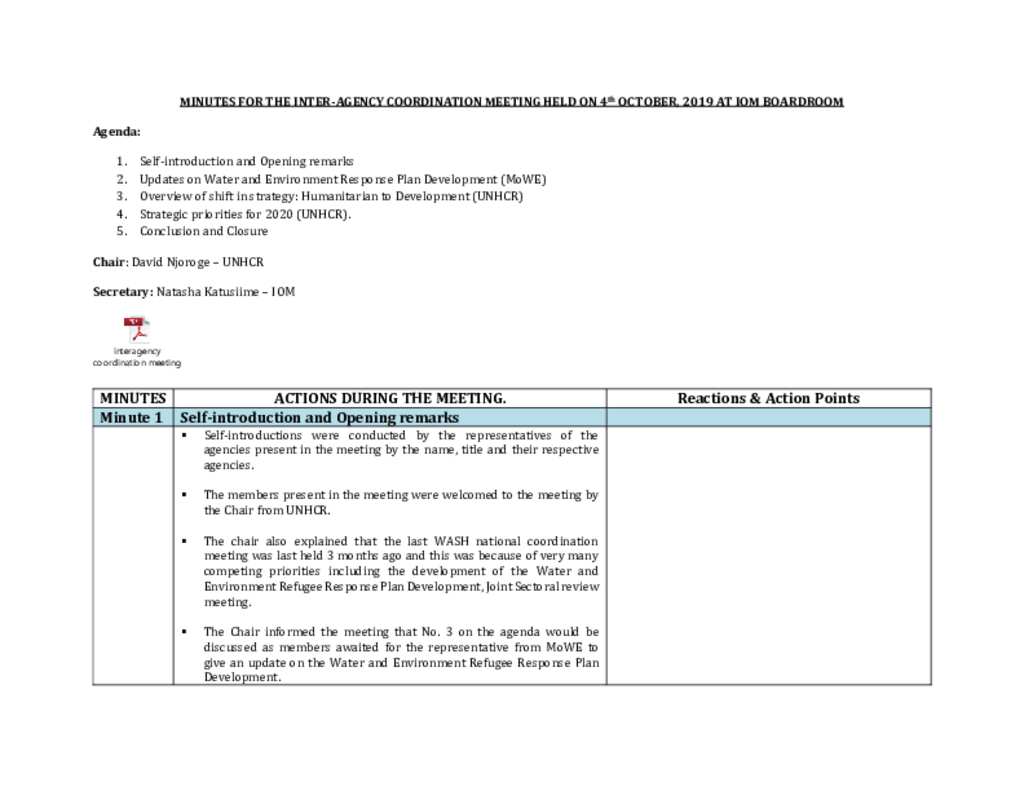 WASH TWG Coordination meeting minutes for October