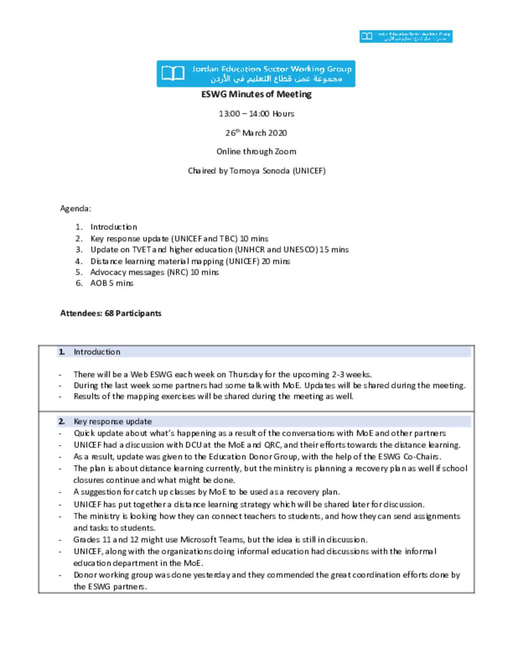Web ESWG Meeting Minutes - 26 March 2020