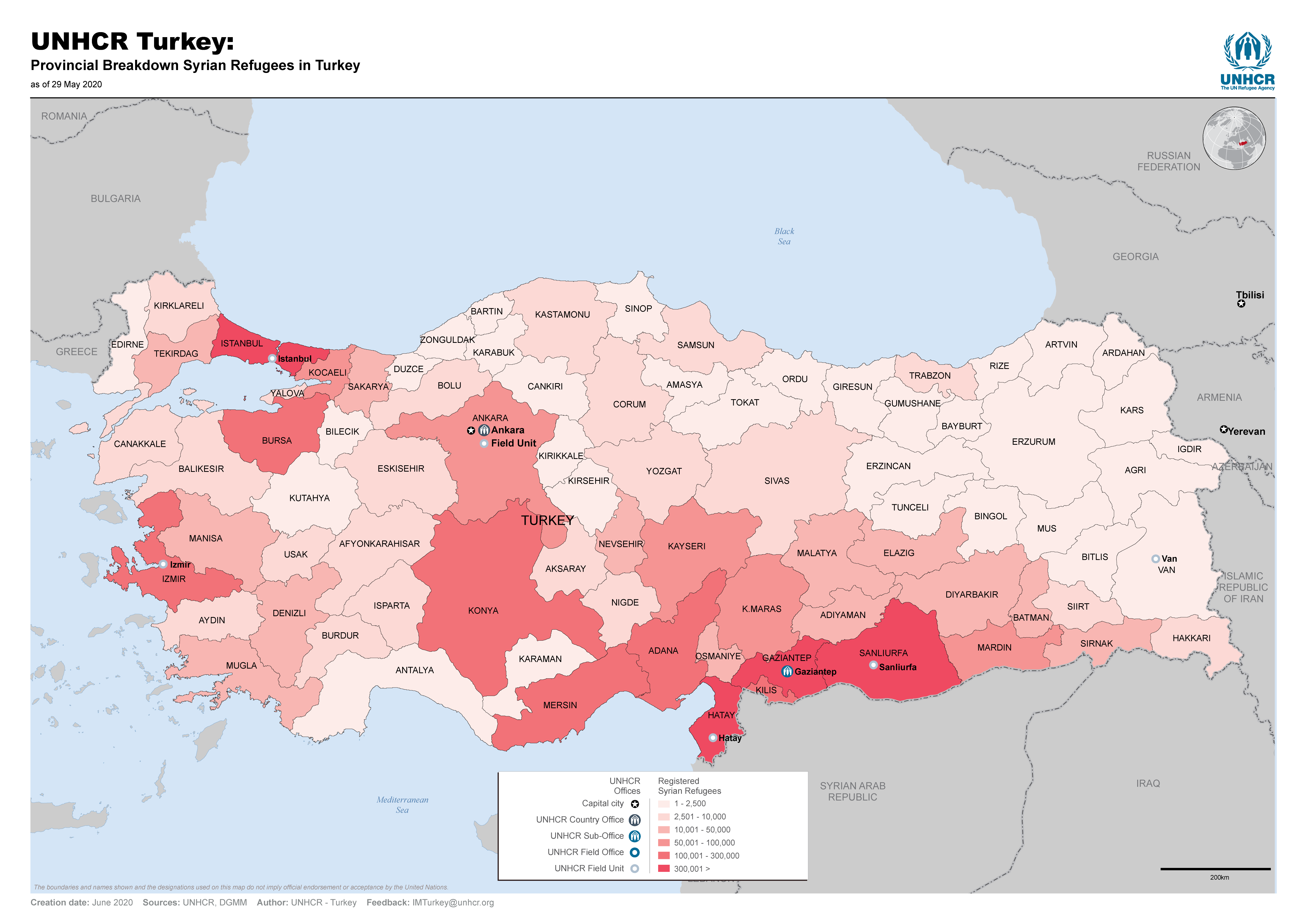 UNHCR Turkey: Provincial Breakdown Syrian Refugees in Turkey - June 2020