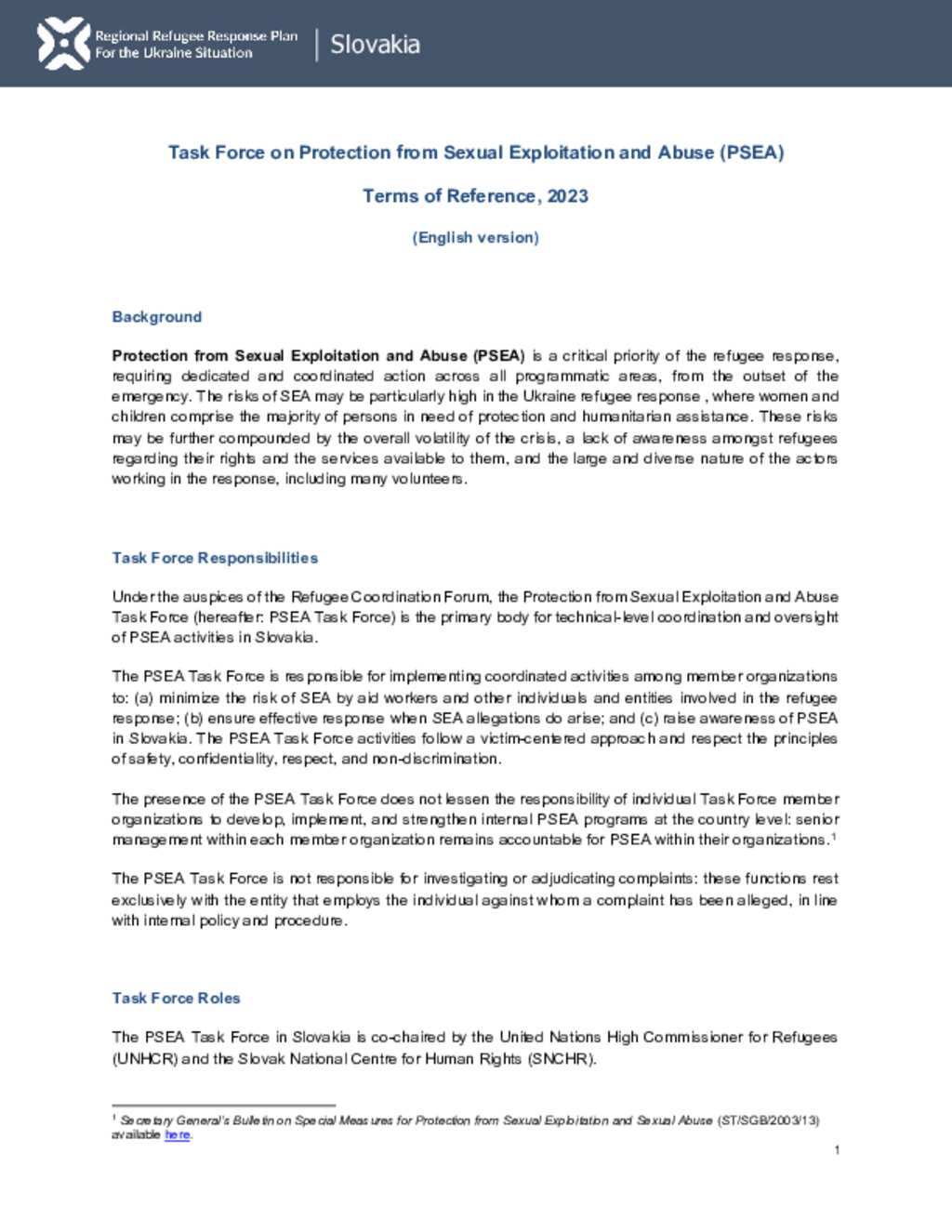 Slovakia: PSEA Task Force Terms of Reference 2023 (English)